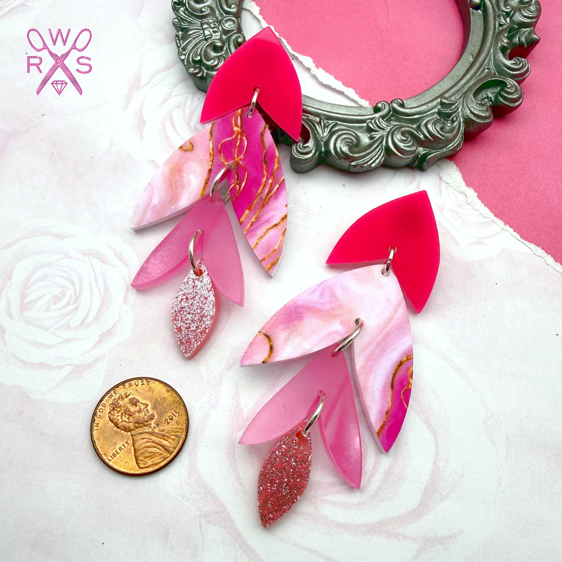 Make a statement with Rio Dangles in Gilded Pink, the ultimate date night essential from our First Class Crush Collection. These cascading dangle earrings blend hot pink hues with stunning pink and gold marble accents and shimmering glitter details that catch the light beautifully. Perfect for Valentine's Day or whenever you want to feel fabulous, these eye-catching beauties deliver girly elegance with serious style. Whether you're heading out for romance or just want to turn heads, these pretty dangles are your go-to accessory for looking effortlessly chic and undeniably gorgeous.